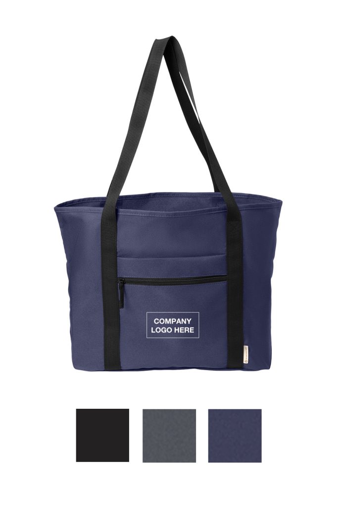 • 100% recycled 600D polyester• Front zippered pocket• Web handles• Exterior woven label that says 100% RECYCLED FABRIC• Dimensions: 13″h x 14″w x 5.5″d; Approx. 1,001 cubic inches
