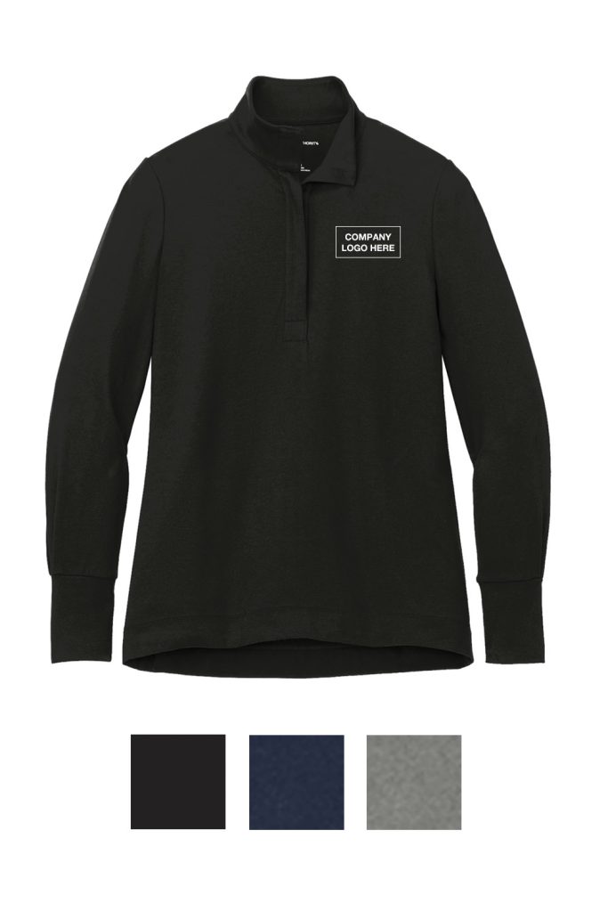 Designed for the fairway or the corporate hallway, this cotton-rich 1/4-zip adds a lightweight layer of warmth with enough stretch for easy movement. 6.1-ounce, 70/26/4 cotton/poly/spandex jersey Cadet collar Covered zipper placket Pleats at shoulders and cuffs Inverted box pleat at back yoke Wide rib knit cuffs Rounded, high-low hem Tag-free label