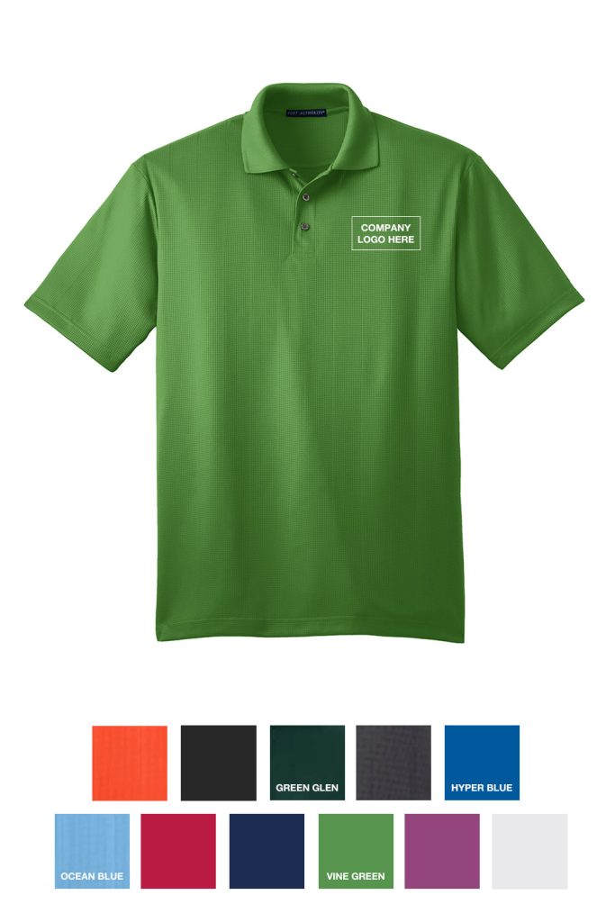 Lightweight and breathable, this shirt features a subtle jacquard texture. But the best part comes from what you can’t see. Designed with moisture-wicking performance, this shirt will help keep you cool and dry.3.8-ounce, 100% polyesterFlat knit collar3-button placket with pearlized smoke tone buttons; white buttons on WhiteOpen hem sleeves