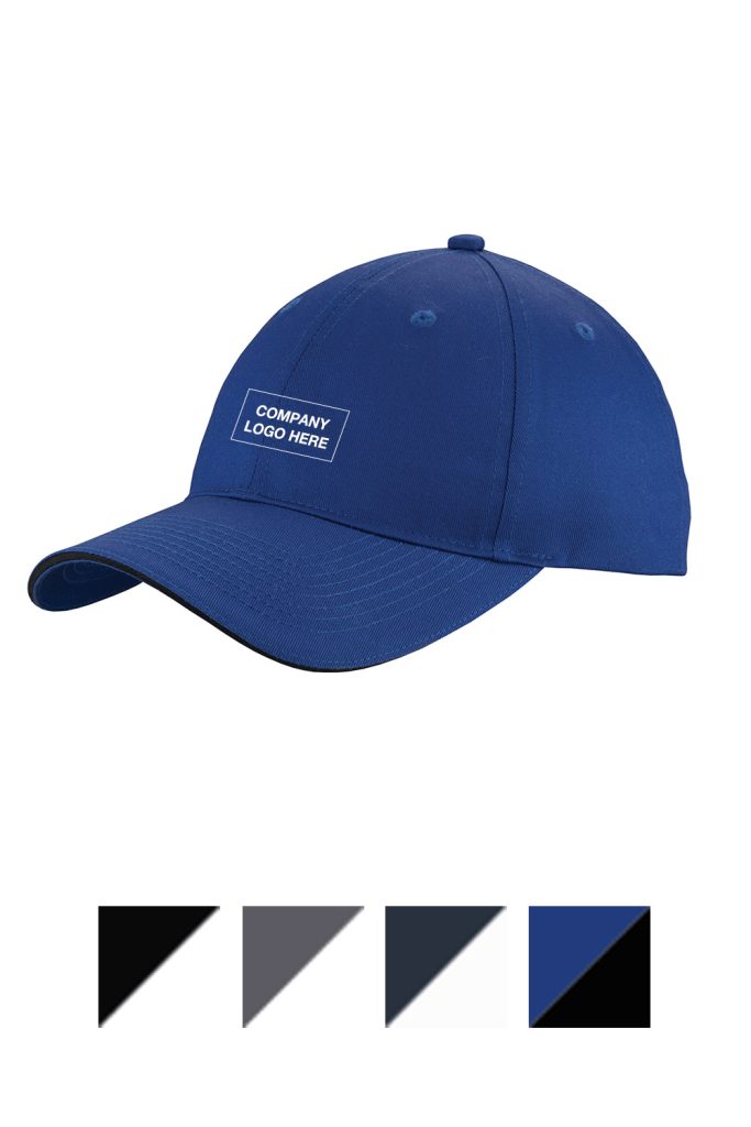 This value-priced cap has a contrast sandwich bill and an unstructured look for up-to-date style.Fabric 100% cotton twillStructure UnstructuredProfile LowClosure Hook and loop