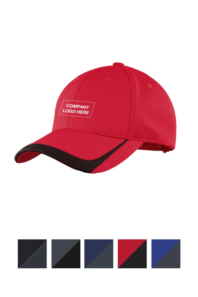 With a moisture-wicking sweatband and contrast detail on the brim, this adjustable cap performs with an athletic look.Fabric: 100% polyester pique knitStructure: StructuredProfile: MidClosure: Low-profile hook and loop